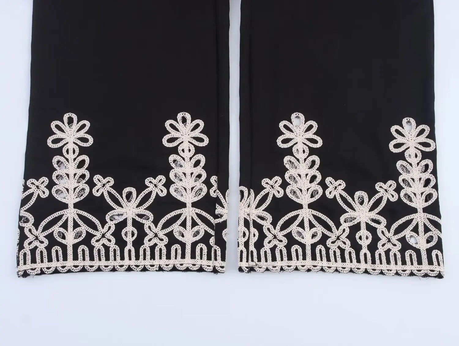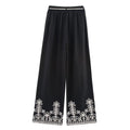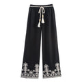 Elegant Boho Wide-Leg Pants with Embroidered Hem