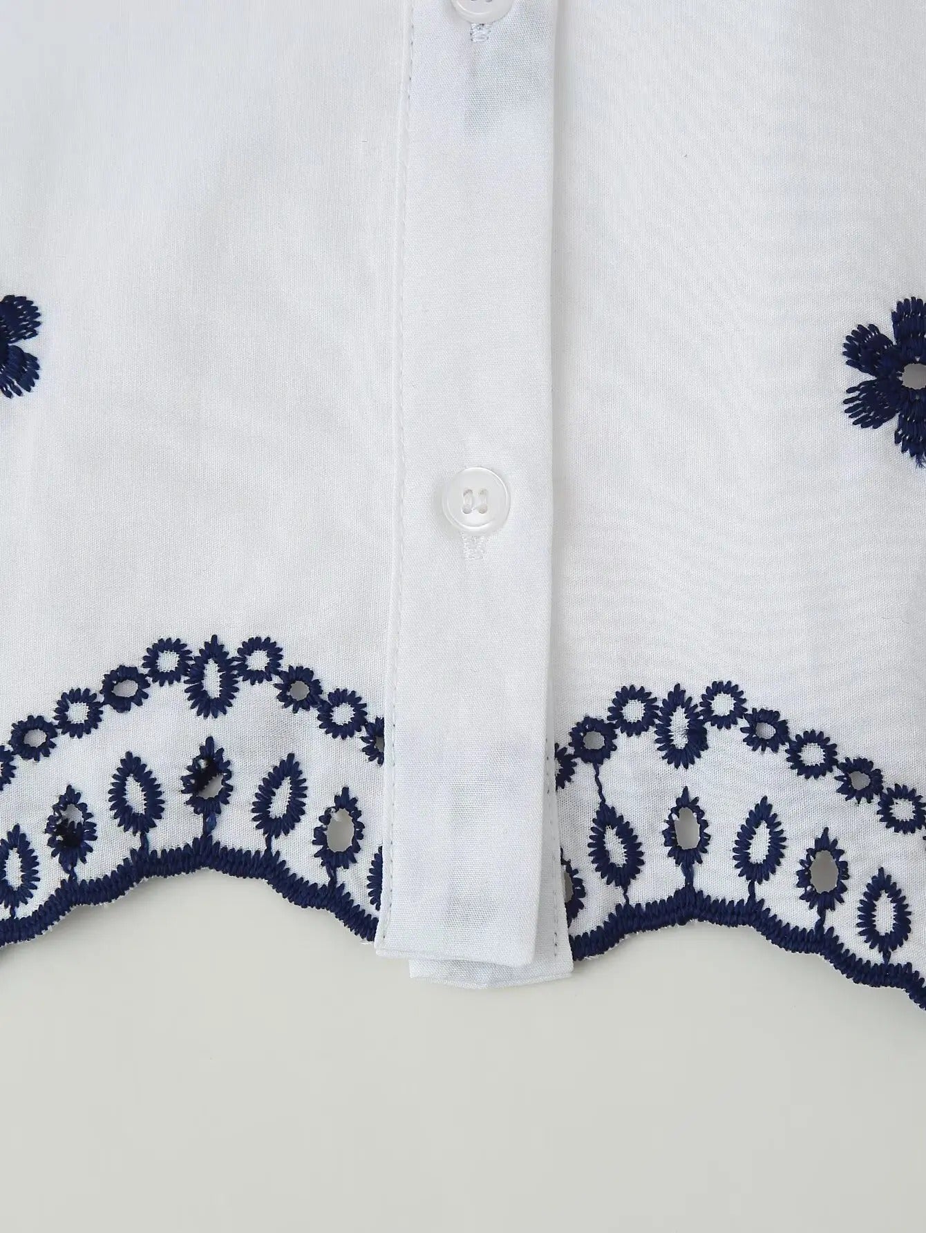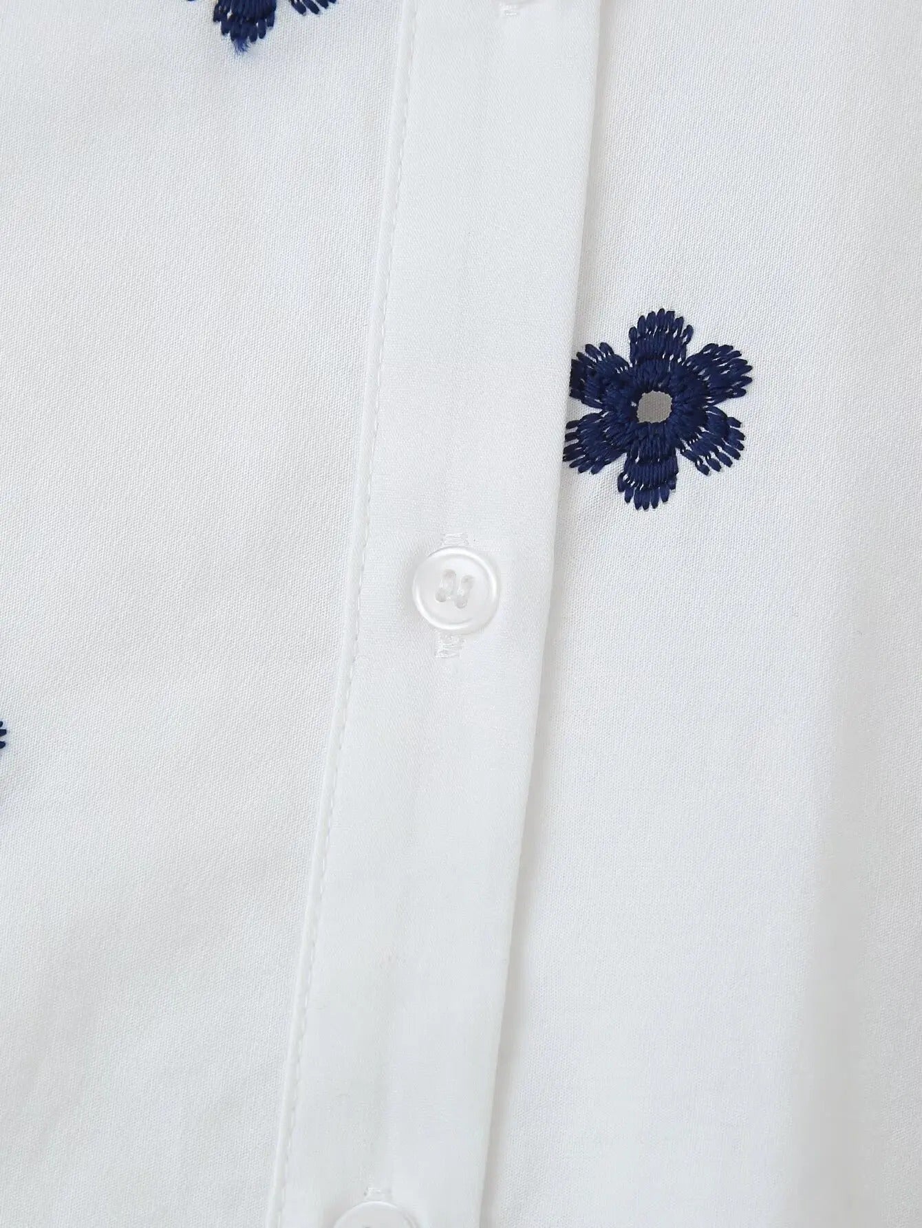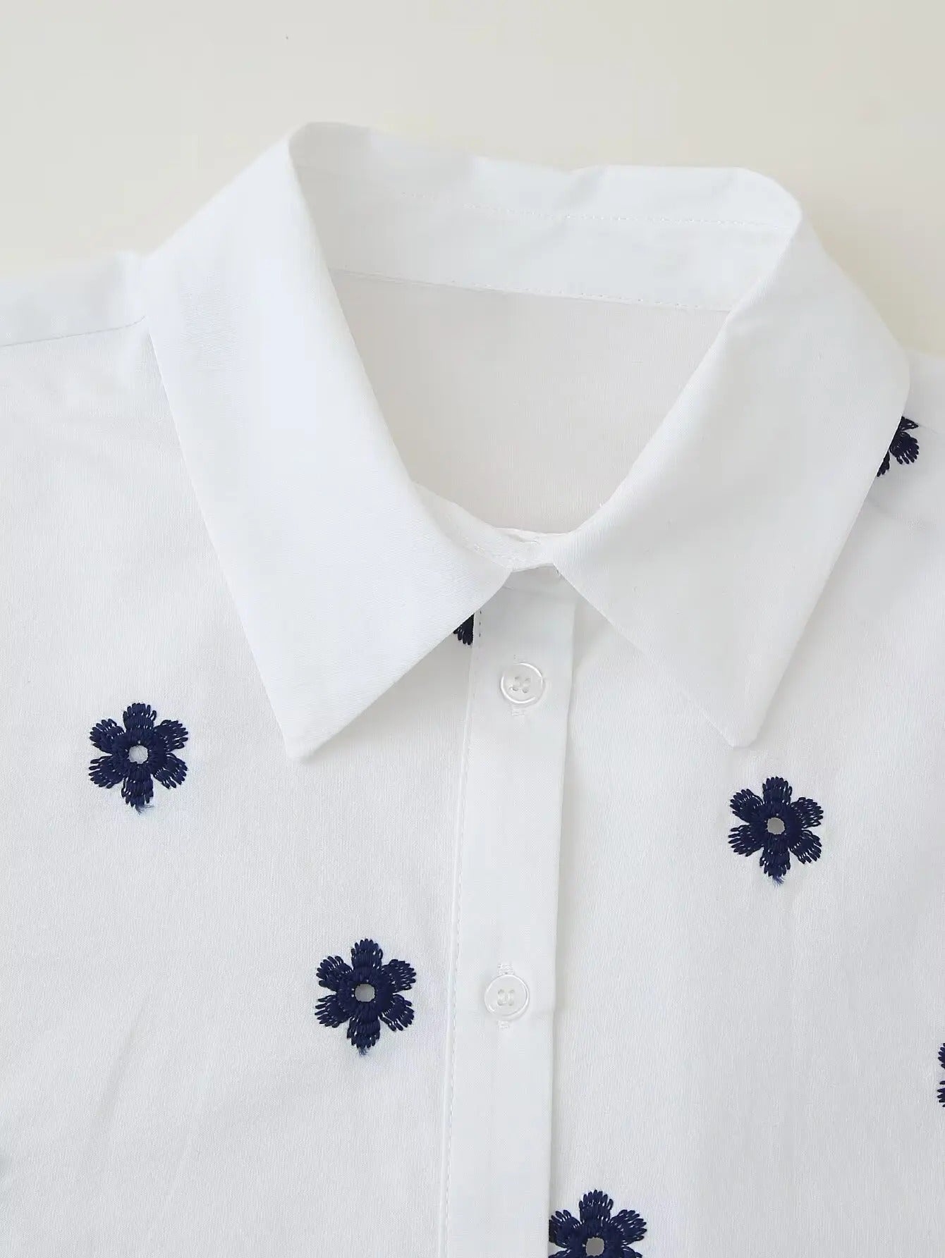 Embroidered Floral Button-Up Shirt – Chic & Timeless