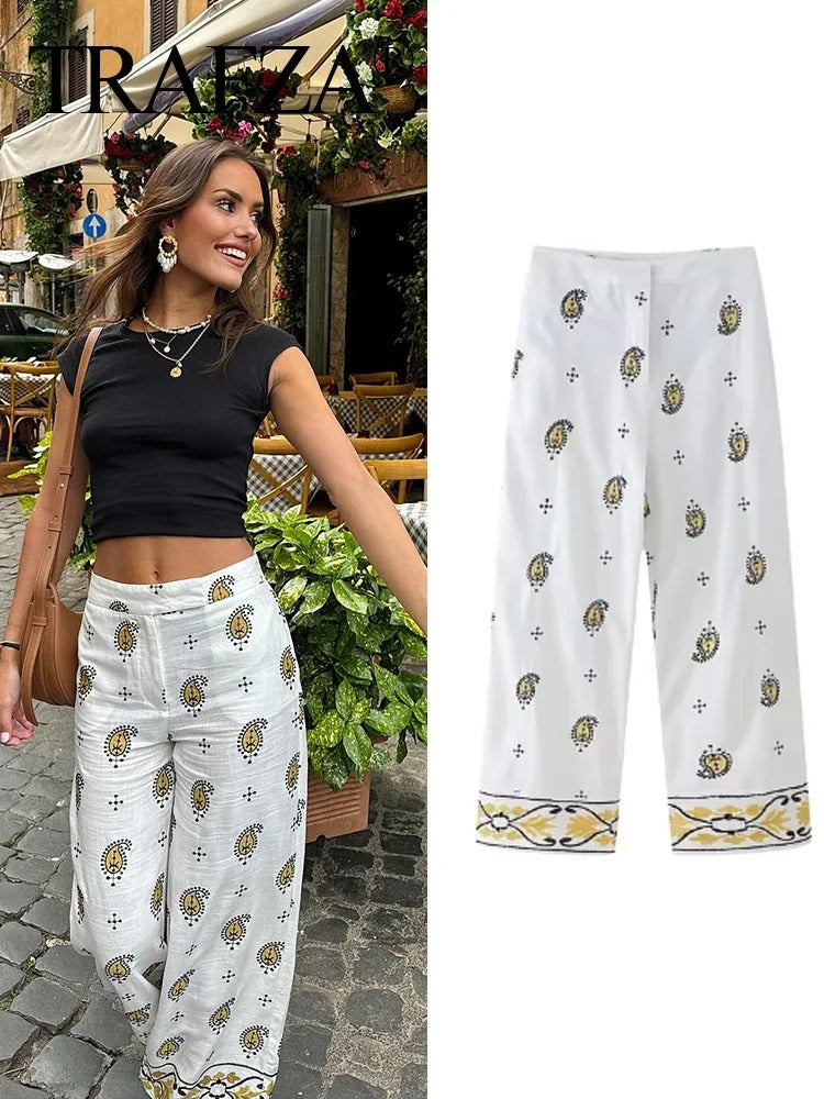 Step into effortless style with these Boho Chic Wide-Leg Pants. Featuring a crisp white base adorned with elegant paisley patterns and a beautifully detailed border hem, they’re perfect for creating a relaxed yet polished look. Ideal for casual strolls, brunch dates, or vacation outfits, these pants bring a touch of free-spirited charm to your wardrobe.