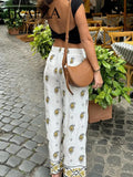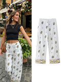 Wide-Leg Pants with Paisley Print & Border Detail